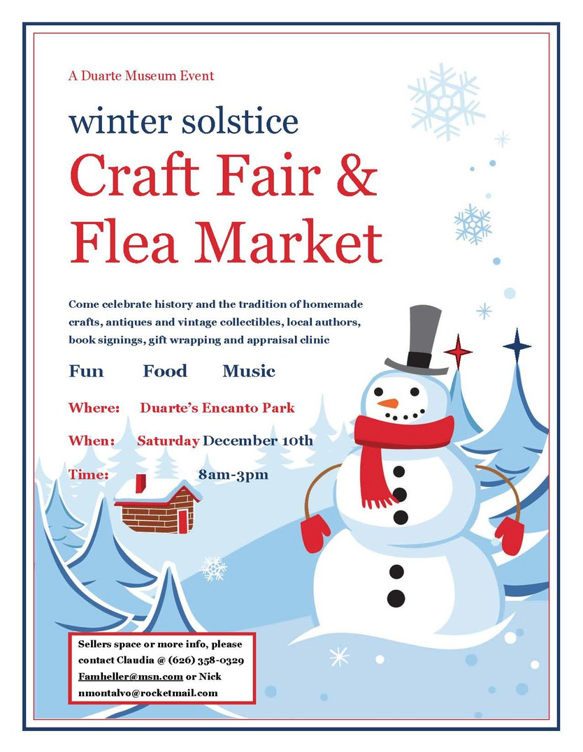 The Craft Fair committee will provide helpers, unleash a publicity campaign and organize the event. Proceeds support the Duarte Historical Society & Museum, an all-volunteer non-profit